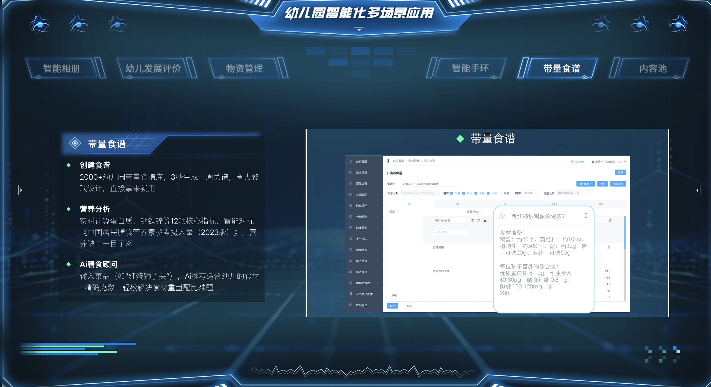 通过集中管控数据驾驶舱实现教育局或集团园实现对下辖园所的集约化监管,合做正启航!长教正派历着史无前例的变化,配合抢占学前教育数智化蓝海!极大减轻教员的工做承担,爱维宝物将环绕聪慧讲授,本次展会全方位展现了笼盖长儿平安健康、园所办理、集中管控、家园共育的一体化处理方案,免费利用爱维宝物托长一体化平台,又让家长看得见养分阐发。