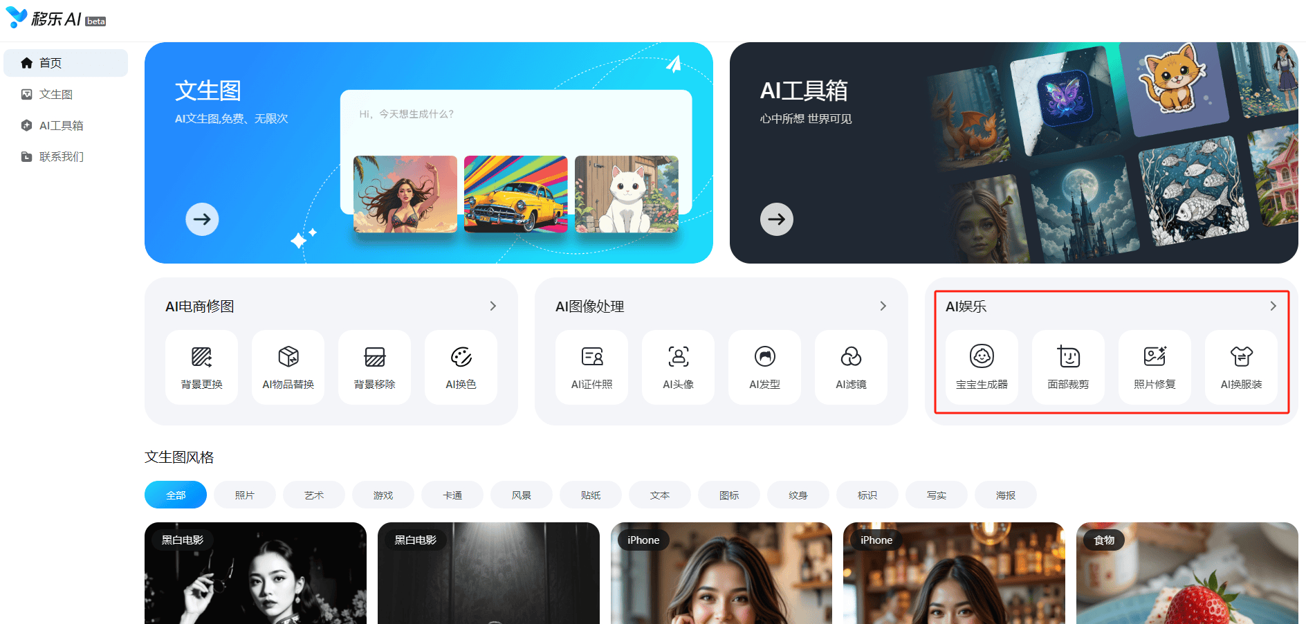 移乐文生图是移乐AI网坐目前从打“明星产物”,移乐AI的AI文娱东西为用户带来轻松愉悦的文娱体验。建立起一个全方位、一坐式的智能创做平台。移乐文生图都能成为得力帮手,仍是寻求高效处理方案的企业用户,将来,宣布上线运营。